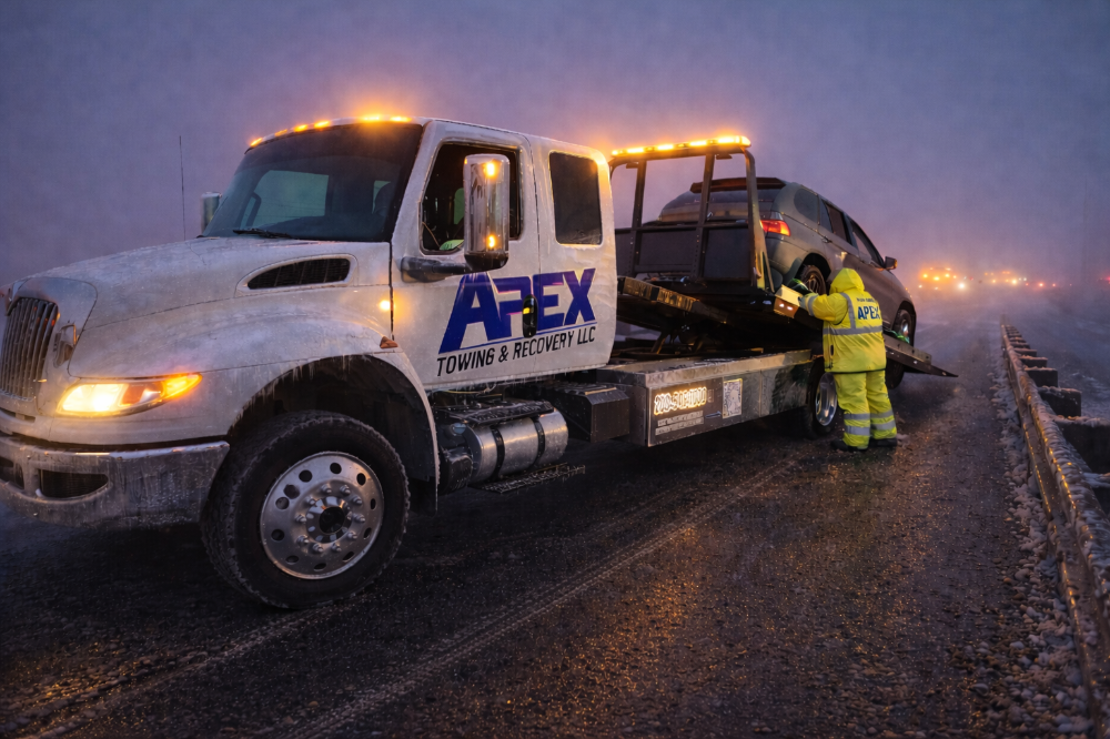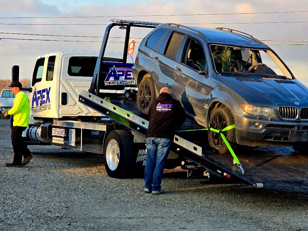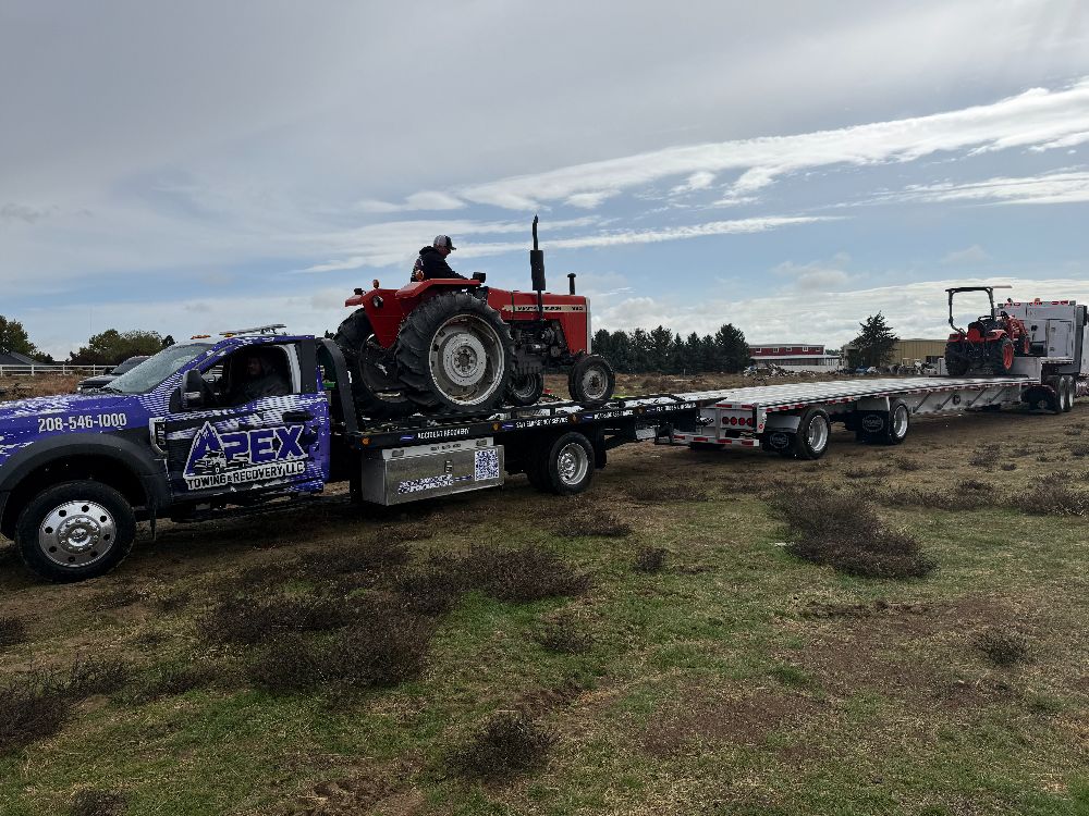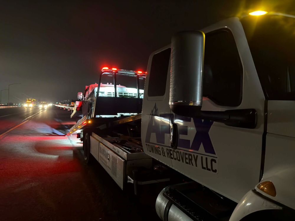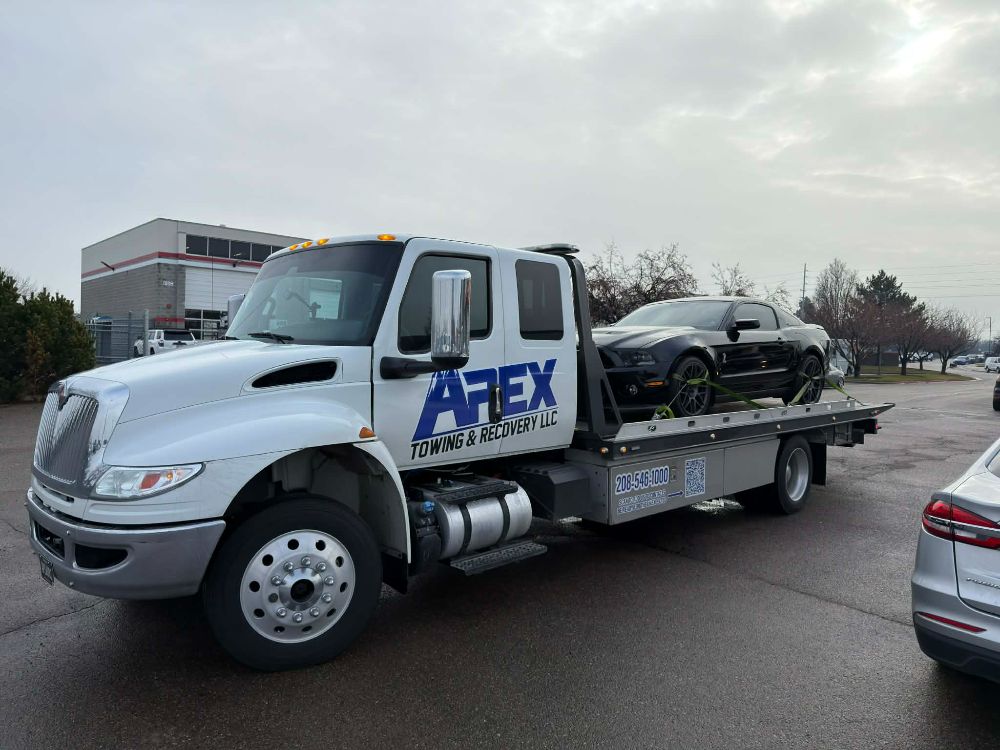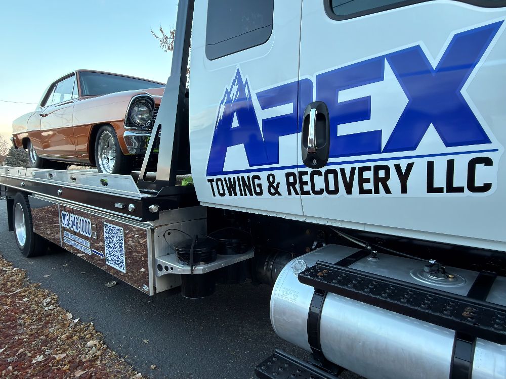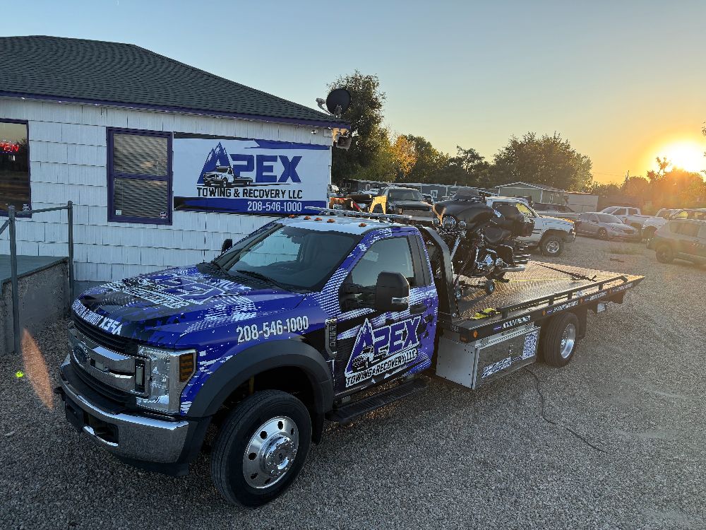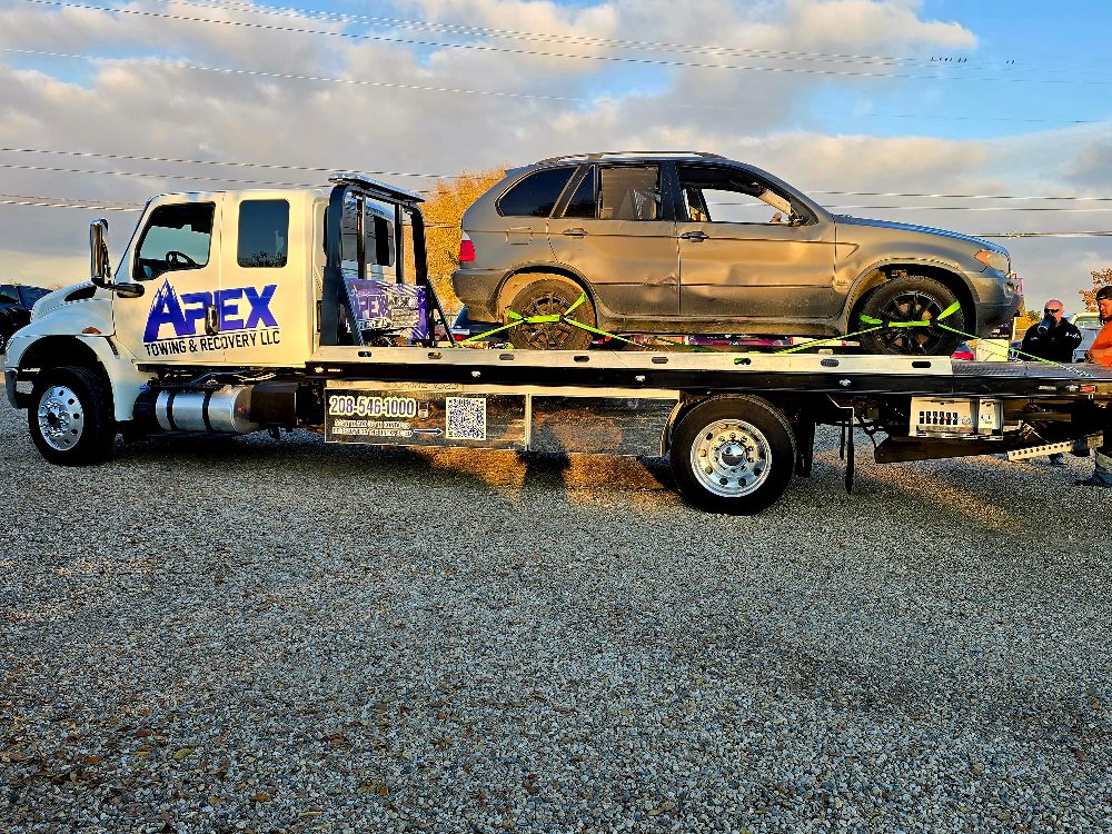 Apex Towing & Recovery LLC is proud to serve the Treasure Valley with professional towing and recovery services backed by modern equipment. Our gallery highlights the flatbed towing trucks, winch out operations, accident recoveries, and roadside assistance work we perform across Nampa, Caldwell, Boise, and surrounding communities.